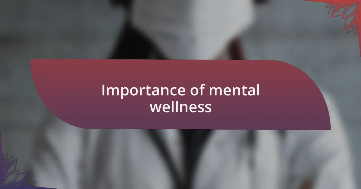 Mental wellness is crucial because it affects every aspect of our lives. I remember a time when my mental state was low, and as a result, my physical health suffered too—I was more fatigued and less motivated to engage in activities I normally enjoyed. It made me realize how interconnected our mental and physical well-being truly is. Have you ever noticed how a bad mood can linger long after a stressful encounter?